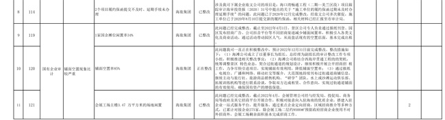 此问题是市属国企 2014-2020 年对外投资与合作项目效益情况审计调查专项审计项目海审企调报〔2021〕18号中提出的“海旅控股下属企业海口旅游景区物业服务有限公司(下称景区物业)摊位闲置率 34%。景区物业在与社会资本合作开发经营白沙门公园内铺面中分得摊位23个,截至2020年底,仍在经营的摊位15个,闲置8个”的问题。此问题已经完成整改,景区公司专人负责通过报纸刊登、园区发布招商广告、公司抖音平台等不同招商渠道减少铺面闲置率,积极引入各类文化及商业活动,通过活动带动园区人气,从而盘活空置店面4间,4间商铺的经营业态为:风情街221-222号店面销售预包装商品、232-233号木屋(2间)店面销售花梨工艺品、将原巡回法院办公点改为停车场监控室。截至目前,景区公司余4间商铺未出租,空置率仅为17.39%,且正在积极洽谈中。