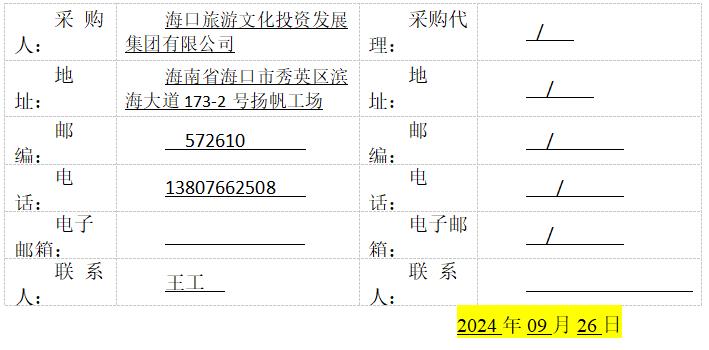 4、采购单位:海口旅游文化投资发展集团有限公司